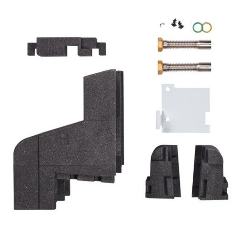 Insulated boxing for wall-mounted installations to protect pipework connecting back to the wall. Includes straight flexible hoses for anti-vibration mounting.